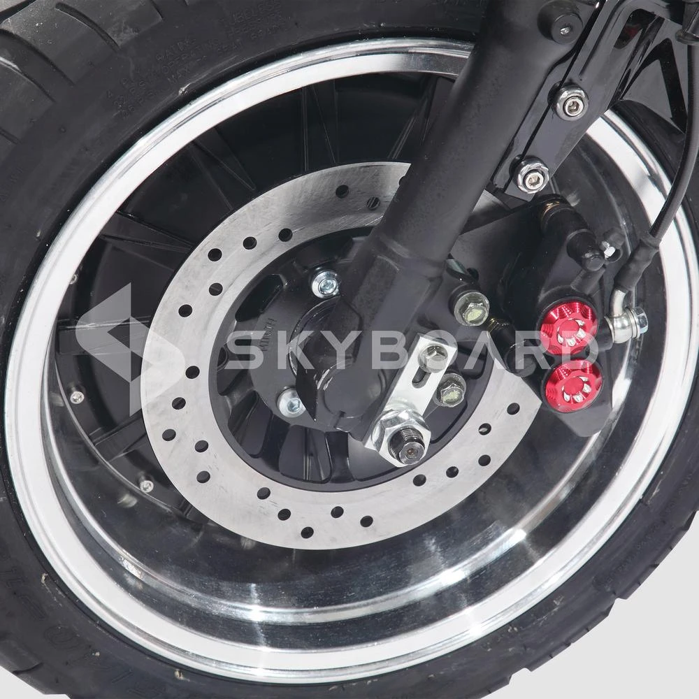 Электромопед оснащен профессиональной гидравлической тормозной системой, которая призвана обеспечить эффективное торможение на высоких скоростях.