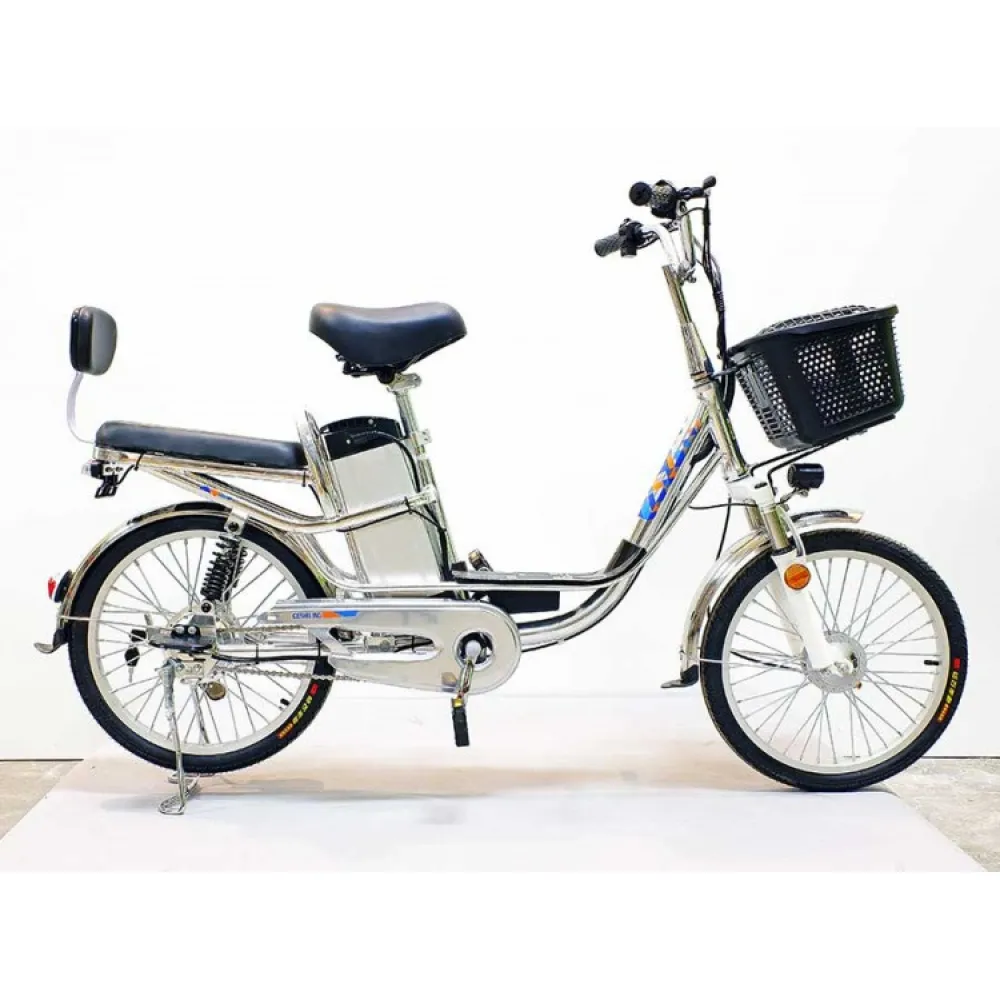 Электровелосипед GreenCamel Транк-2 (R20 350W 48V) Алюм 2-х подвес – выглядит современно и приметно. О такой комплектации мечтает начинающий и профи-райдер. Техника практичная во всех смыслах слова. Обустроена необходимыми элементами для активного время провождения. Оснащена вместительной передней корзиной, в которой удобно перевозить продукты и другие вещи. Имеет второе пассажирское сиденье. Наличие мягкой спинки увеличивает степень комфорта, допускает перевозку детей. Модель может использоваться в качестве повседневной, для поездки в магазин, ежедневных вылазок и поездки с ребенком в садик или другое место.