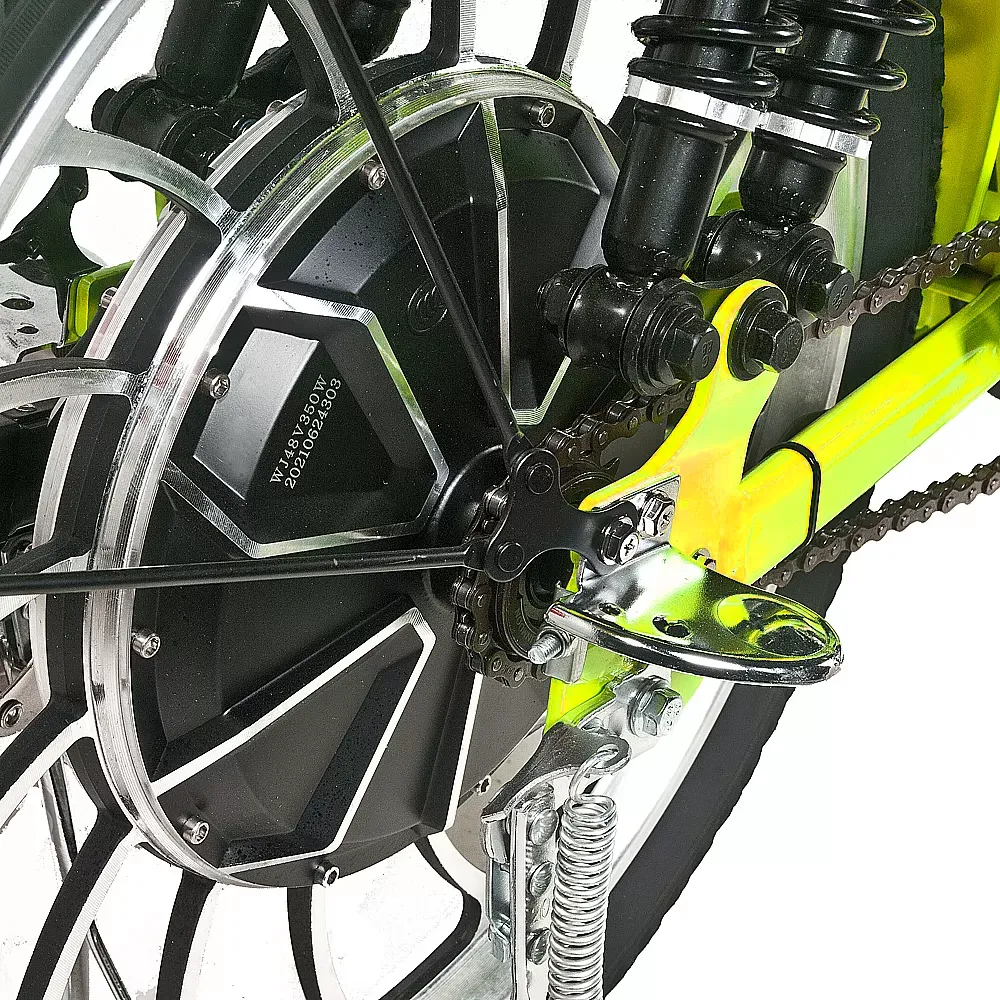 Электровелосипед Jetson Huachi V20 (48V12Ah), жёлтого цвета – новинка с быстросъёмной батареей емкостью 12 Ач и напряжением 48 В. Для большего комфорта пользователей АКБ надежно располагается за широким сидением. Аккумулятор заряжается всего за 7 часов и позволяет преодолеть до 50 км без подзарядки. Яркий цвет техники и смелое дизайнерское решение понравится продвинутым пользователям.