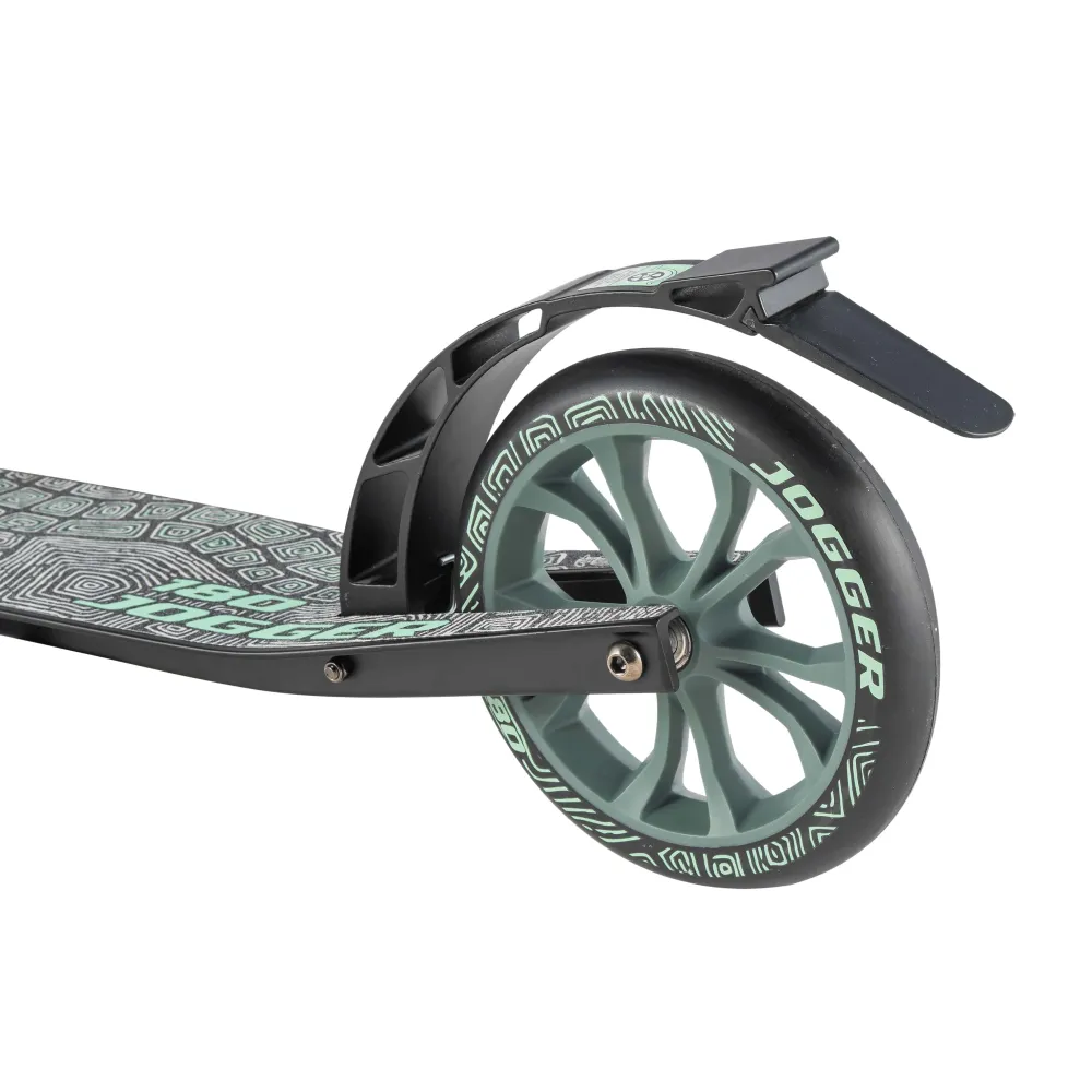 На руле самоката имеется крепление для ремня, позволяющее носить его в руках. Черно-зеленый цвет самоката будет стильно смотреться и не оставит никого без внимания.