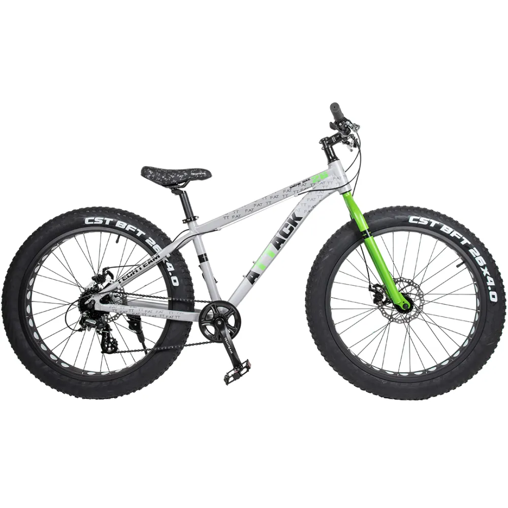 ВЕЛОСИПЕД TT ATTACK 26 2021 бело-салатовый- техника победителей и уверенных в себе личностей. За внешним брутальным видом скрывается небольшой вес модели благодаря алюминиевой раме. Цветовое оформление приковывает взгляды окружающих, вызывает зависть и восторг одновременно. Стать счастливым обладателем фэтбайка захочет любой взрослый пользователь или подросток, на это рассчитаны технические характеристики и удобная посадка.