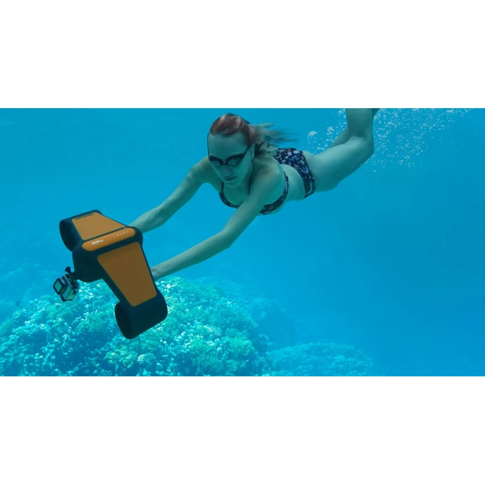 При правильном обращении с устройством емкой фирменной батареи хватает на час пользования. О необходимости заряда АКБ дайвера сигнализирует индикатор, расположенный в минимальной для пользователя видимости. Нижняя часть водного скутера оснащена креплением для камеры. Надеемся, вас заинтересовало наше предложение, рекомендуем приступить к выбору товара и его оформлению прямо сейчас.